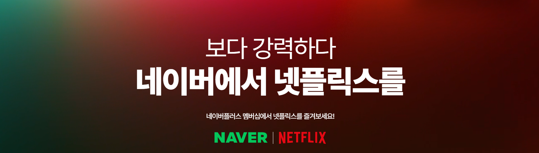 Netflix를 Naver Plus 유료 멤버십에 통합했습니다. 네이버플러스 멤버십으로 넷플릭스 콘텐츠, 게임 등 다채로운 콘텐츠 혜택 이용 가능하세요.